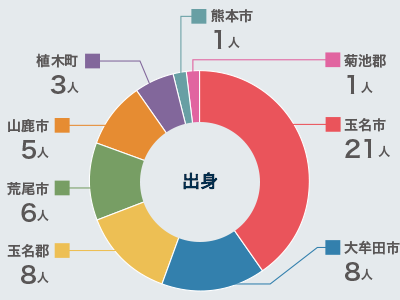 玉名市を中心として、県内各地の出身者がいます。