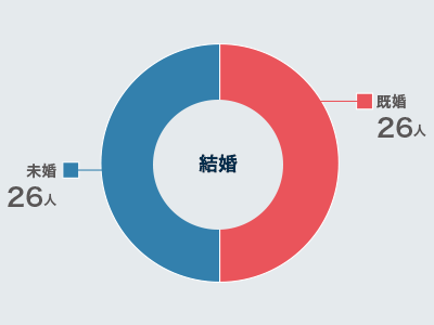 結婚している割合はちょうど半分という結果。家庭を持つスタッフも安心して働ける環境づくりに取り組んでいます。